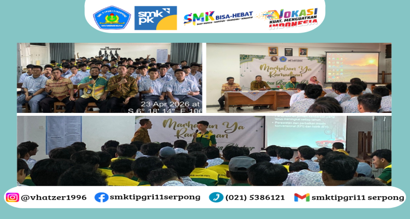Serpong 23 April 2026 - SMKS TI PGRI 11 Serpong kembali menghadirkan inovasi pembelajaran melalui kegiatan guru tamu dari industri dengan tema “Peluang Usaha di Bidang Teknik Kendaraan Ringan (TKR)”. Kegiatan ini diikuti oleh seluruh siswa jurusan TKR, didampingi oleh guru produktif serta Kepala Program Keahlian TKR.